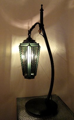 街灯をイメージして制作いたしました。 シンプルさ、レトロ感を出したいと思い制作しています。 色は2種類の透明、不透明の緑系のガラスのみです。 透明の部分は、電球がまぶしいかとも思いますが、それでレトロな感じを表現致しました。
