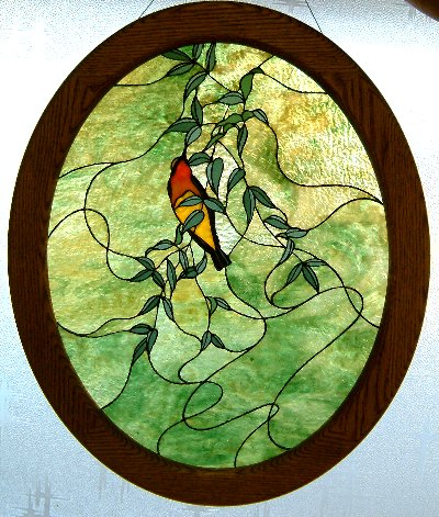 バックの色は、緑の濃淡のガラスで森の中を表現しました。